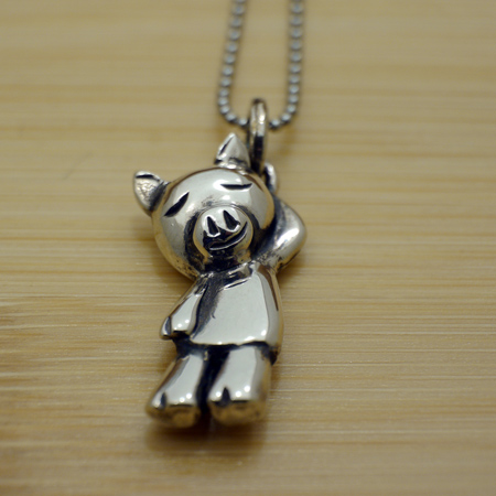 背中に刻印を無料でお入れできます。他に同じポーズのはにかみネコペンダント 、くまった熊ペンダントもいます。豚モチーフは、ぶたリング、ポケット入りぶたペンダント、ぶたペンダント、シンプルなぶたペンダントがあります。