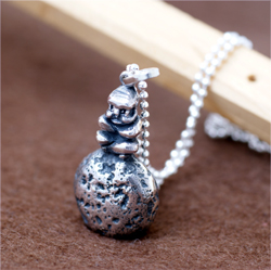 今が我慢のとき、そんな人のお守りとして。座っている石の中身は空洞です。チェーン付。石の上に座っている人の背中、お尻も可愛いのです。