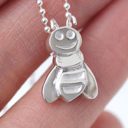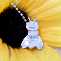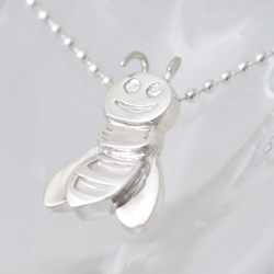 花から花へと移動して蜜を集める蜜蜂のペンダントを作りました。立体的な足にすると引っかかってしまうので彫って表現いたしました。蜜蜂は女王のためにせっせと働きます。蜜蜂を愛する店主が心を込めてデザインした蜜蜂のアクセサリーです。体のふさふさを再現したリアルなみつばちペンダントもあります。