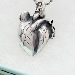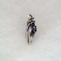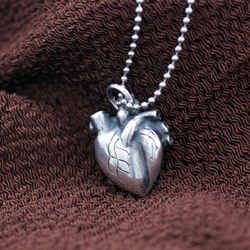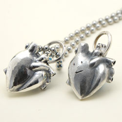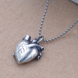 リアルさを追及したハートは心臓型ペンダント。血管にまでこだわりました。遠目にはぽってりとボリュームのあるただのハートに見えます。熱い想いが伝わってきそうです。見ているだけで、ドキドキしてきます。心臓は動くので形にするのは難しかったです。心臓モチーフのアクセサリーです。小ぶりがお好みの方には心臓ペンダント(小)をどうぞ。他のハートモチーフはハートモチーフのアクセサリーをご覧ください。