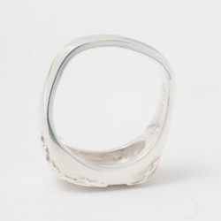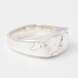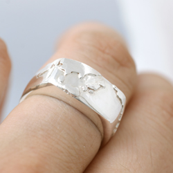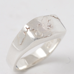 世界があなたの指にはまった。「世界は一体誰のもの?」というコンセプトリング。グローブ(地球)モチーフは時々ありますが、丸みのあるほのかなスクエアシェイプにアレンジしてみました。程好いボリューム感とメッセージの遊び心をオススメしたい指輪です。