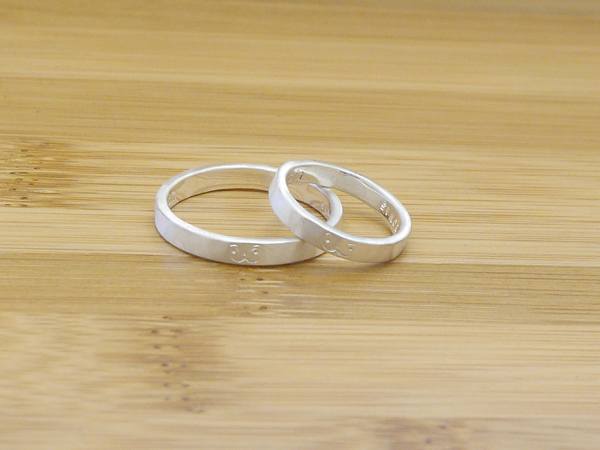 サービンシルバーの結婚指輪はご注文をいただき、行き先が決まってから制作をいたします。出来上がりの何が違うわけではないのですが、 100ヶ、1000ヶ同時に作ったうちのどれかではなく、ひとつの金属の塊の状態からから二つに分けてそれぞれの指輪になったという過程のストーリーも楽しんでいただけると幸いです。他とは違うちょっとしたカスタム(たたいたり、つや消ししたり・・・)も可能です。今あるサービンシルバーの製品をご結婚指輪にということも歓迎です。幸せなひと時に参加させてもらえることがうれしいです。また、ご婚約指輪(エンゲイジリング)もご相談にのります。ご結婚指輪・ご婚約指輪いづれも納期は約1ヶ月です。お急ぎの場合はご相談下さい。